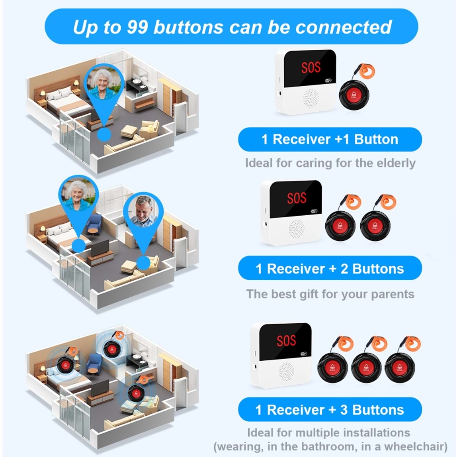 2- 1 ADET KABLOSUZ İPLİ ÇAĞRI BUTONU