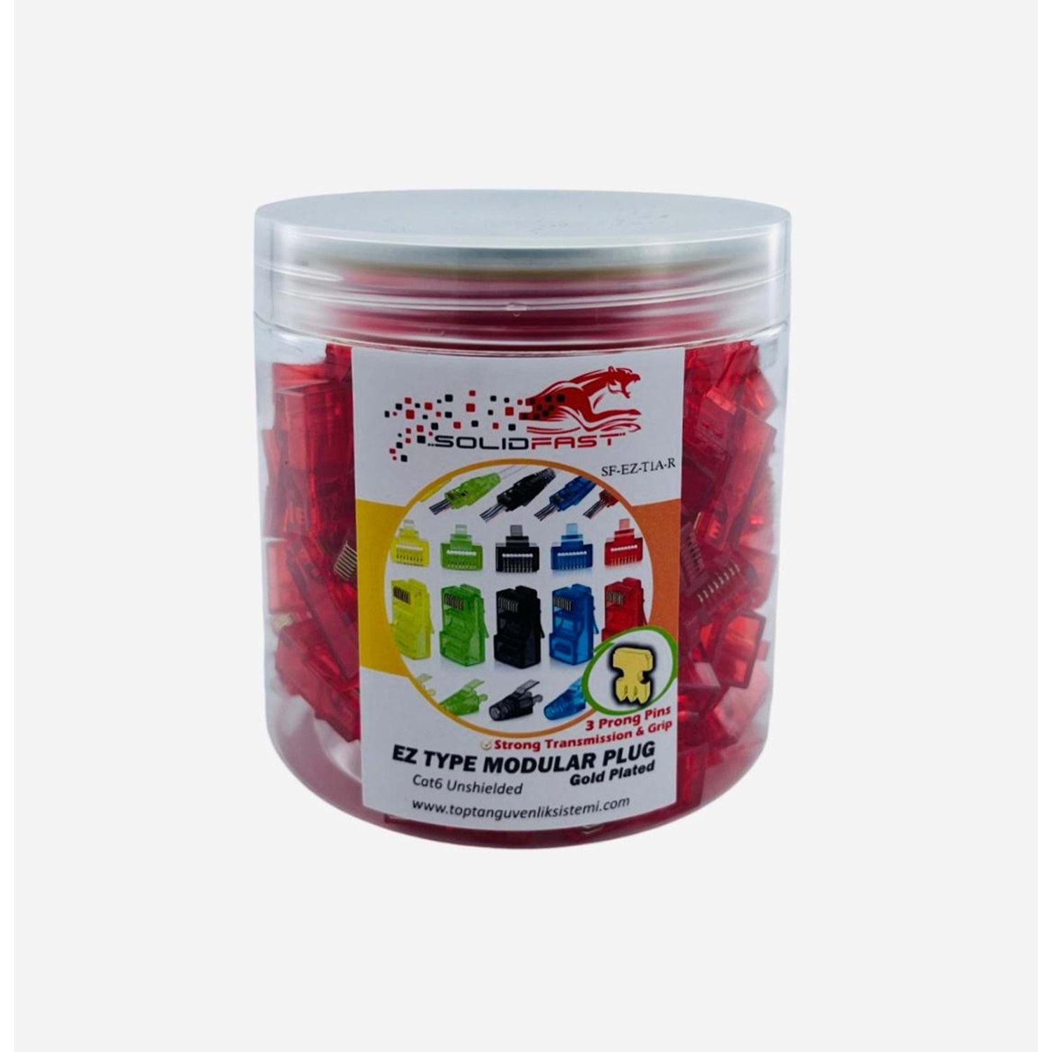 SOLIDFAST KIRMIZI CAT5/6 EZ TİP RJ45 MODÜLER PLUG 100 LÜ KAVANOZ